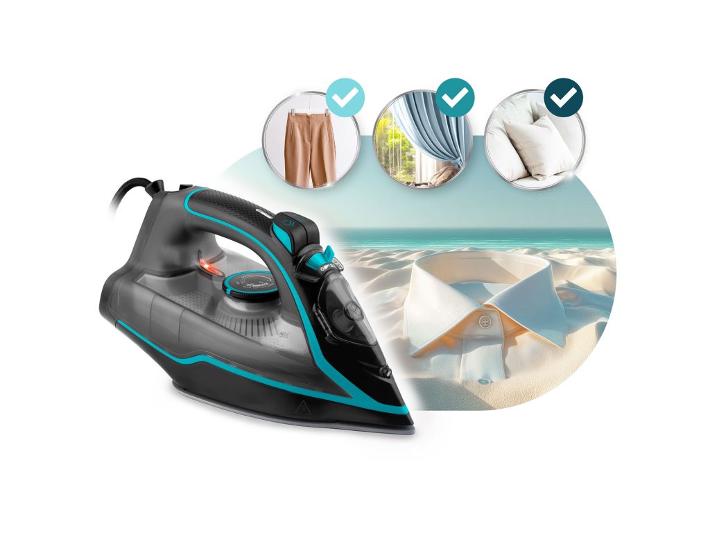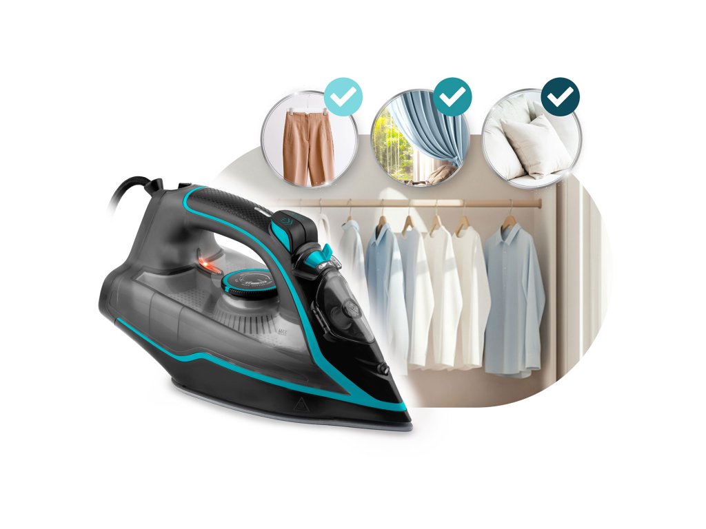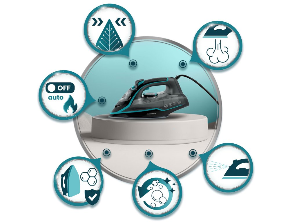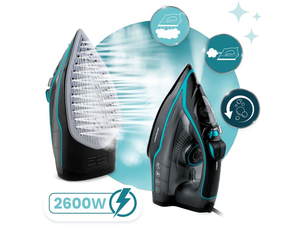 AŽ 2600 W VÝKONU | NASTAVENIE VYPUSTENIA PARY | SAMOČISTENIE | OCHRANA PRED PREHRIATÍM | NÁDOBA NA VODU 230 ML | ZVISLÁ PARA | NASTAVENIE TEPLOTY | AUTO-OFF