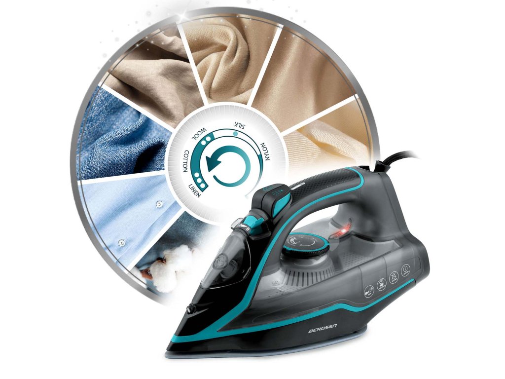 Spoľahlivá parná žehlička s parným termostatom 9v1 značky Berdsen