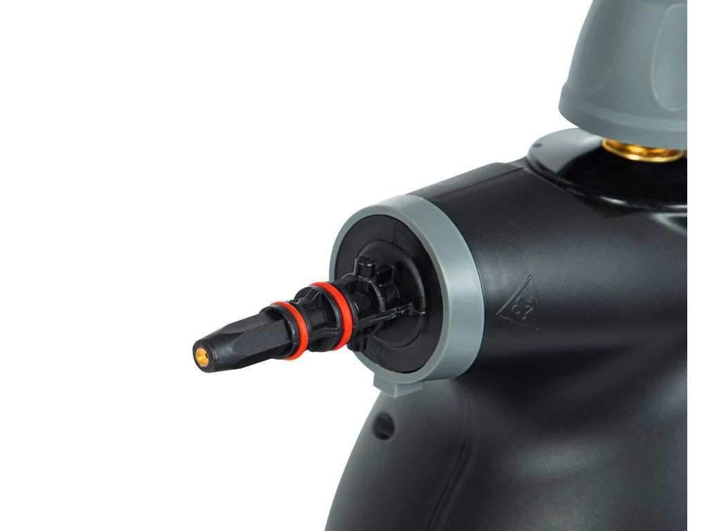 Ergonomická rukoväť a kompaktné prevedenie zaisťujú pohodlné držanie aj pri dlhšom upratovaní. Otočná tryska pomáha dostať sa do rohov a úzkych miest. Bezpečnosť zvyšuje ochrana proti popáleniu a ochrana proti neúmyselnému spusteniu.