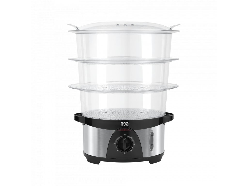 Zaujíma vás, ako variť v pare? Kúpte si naparovač Teesa TSA0035 s výkonom 750 W, ktorý spôsobí revolúciu vo vašom varení. Vďaka veľkému objemu 9,6 litra a trom praktickým nádobám rýchlo pripravíte zdravé a chutné jedlo pre celú rodinu. Parný varič Teesa navyše zabezpečí, že jedlo pripravované v pare bude mať nižší obsah kalórií a tukov, čo vám pomôže udržať si štíhlu postavu.