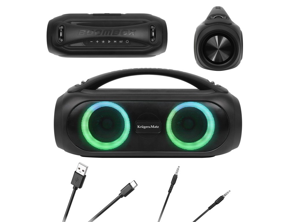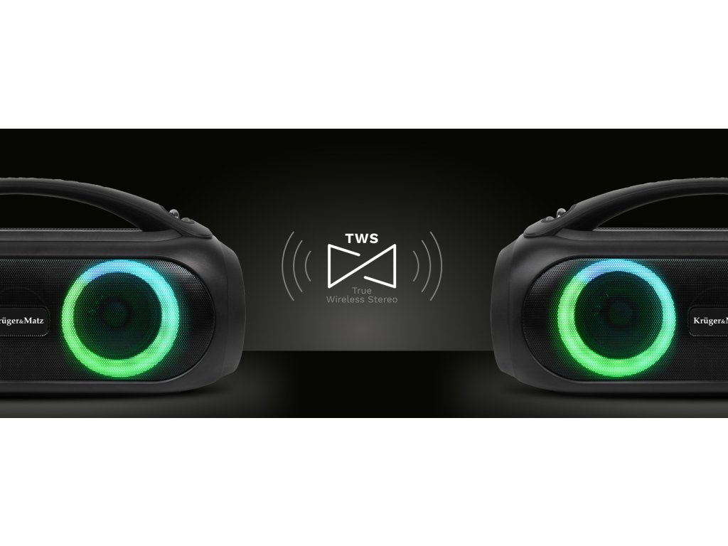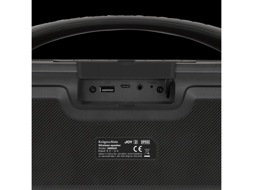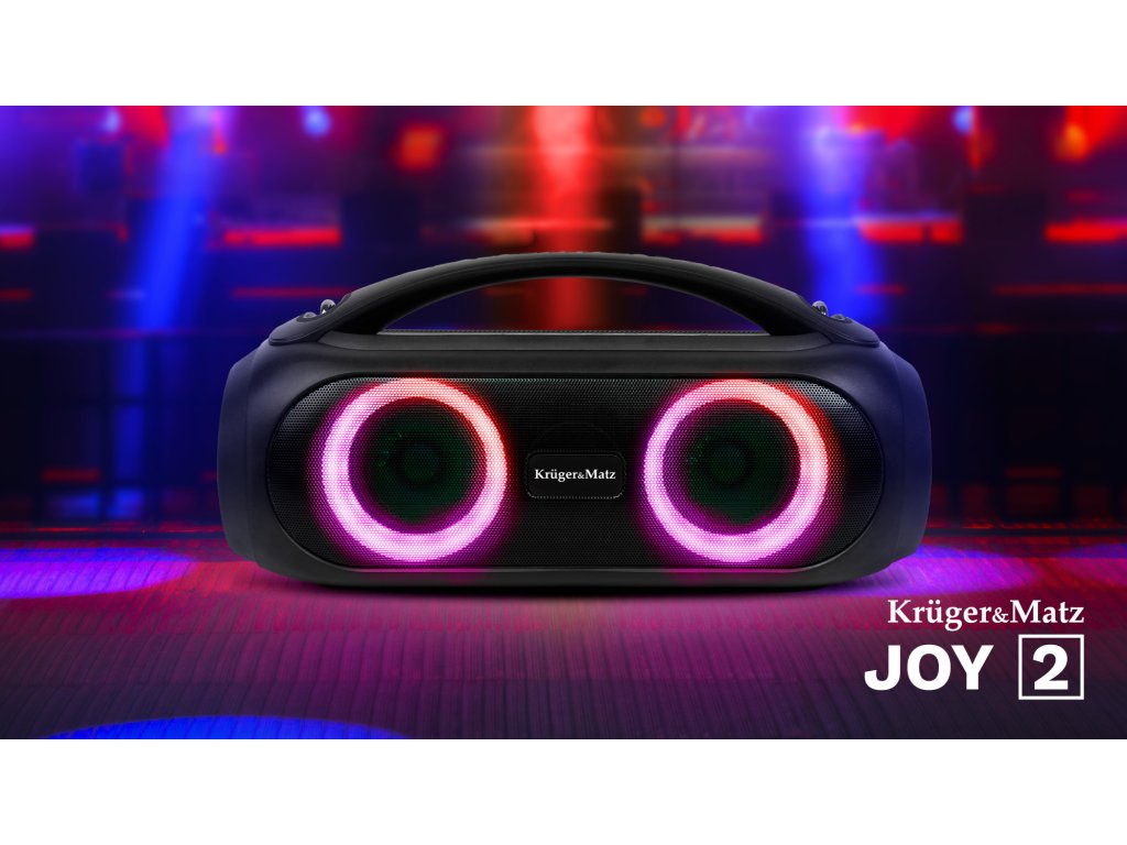 Reproduktor Kruger&Matz Joy 2 Bluetooth je vybavený 2 stredotónovými meničmi a 1,5-palcovým výškovým meničom s celkovým výkonom 20 W. Okrem toho je tento model vybavený dvoma pasívnymi membránami na zvýraznenie zvuku basových tónov.