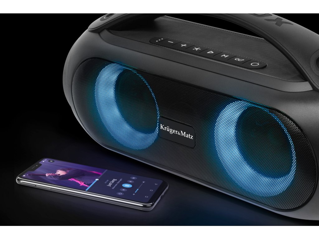 Nechajte sa unášať hudbou s Kruger&Matz Joy 2! Počúvajte svoje obľúbené skladby, kdekoľvek sa vám zachce! Doma, na záhrade alebo vonku - hudba vás môže vždy sprevádzať. Vašu pozornosť upúta nielen čistý zvuk, ale tento reproduktor Bluetooth vás na prvý pohľad zaujme aj svojím dizajnom. Výrazné viacfarebné podsvietenie dodá vašej párty diskotékovú atmosféru.