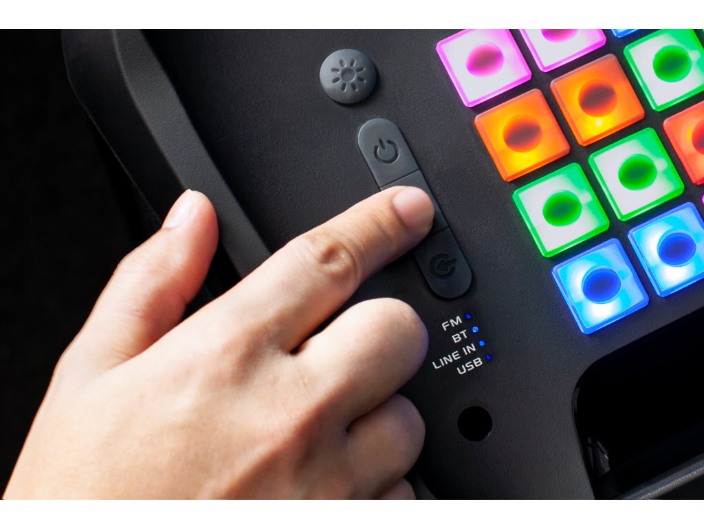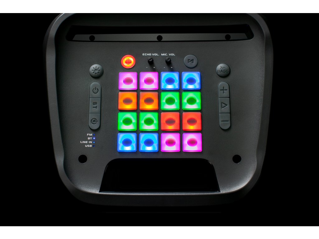 Prvá vec, ktorá vás zaujme, je ovládací panel s nahratými zvukovými efektmi, ktoré možno použiť v akomkoľvek režime reproduktora. K dispozícii máte techno hudbu, syntetizátor a bicie efekty. Užite si hudbu!