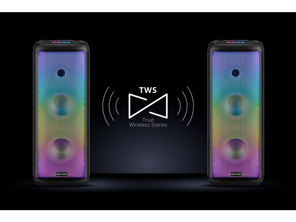 Jeden reproduktor nestačí? Potrebujete ozvučiť väčšiu miestnosť? Pomocou funkcie TWS môžete vytvoriť stereo systém prepojením dvoch reproduktorov Music Box Ultra. Dostaňte všetkých do párty nálady!