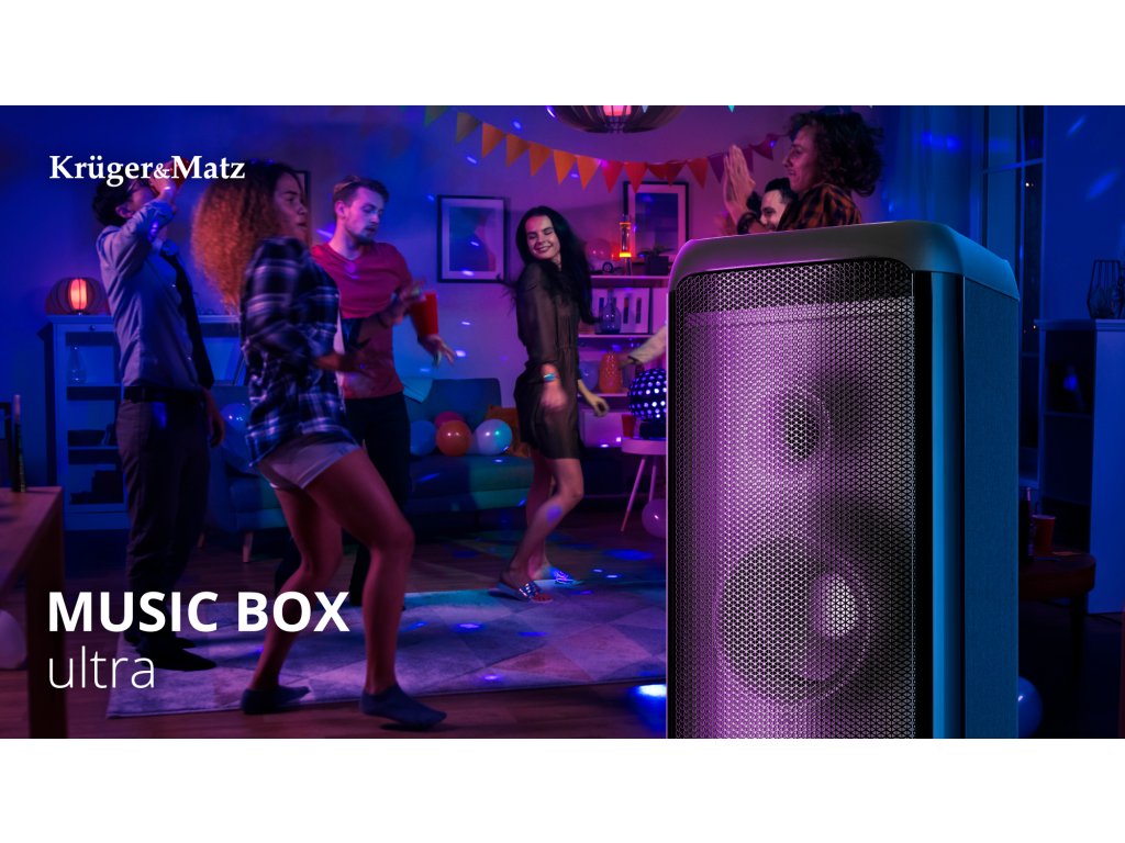 Potrebujete reproduktor BT, ktorý vašich hostí skutočne prekvapí? Vyberte si Music Box Ultra! Zariadenie je vybavené 3 meničmi s výkonom 60 W. Táto kombinácia zaručí dokonalú hudobnú kulisu vašej párty!