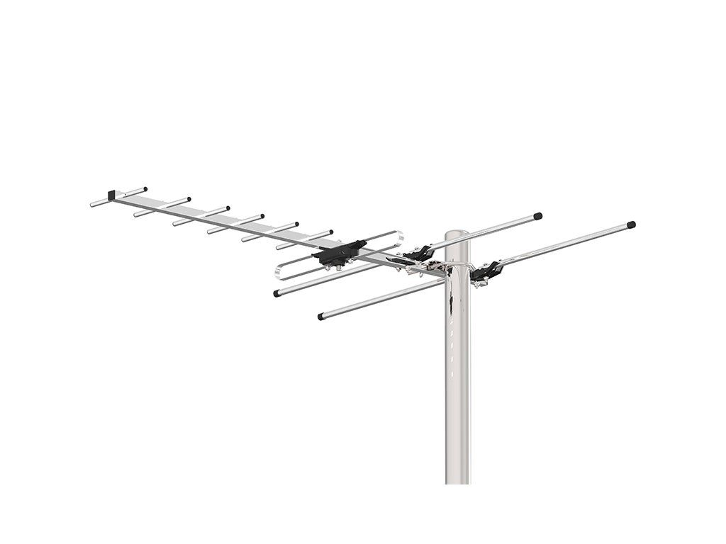 Pasívna smerová anténa pre príjem digitálneho pozemného vysielania DVB-T a DVB-T2 v pásmach VHF aj UHF. Je vhodná pre príjem kanálov MUX1, MUX2, MUX3, MUX4 aj MUX8 a podporuje aj vysielanie v kvalite Full HD a 4K Ultra HD. Vďaka vstavanému LTE filtru pomáha obmedzovať rušenie od mobilných sietí.