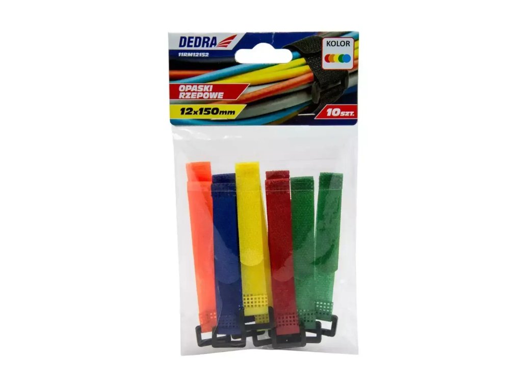 Pásky na káble so suchým zipsom DEDRA 11RM12152, 12 × 150 mm, mix farieb, 10 ks