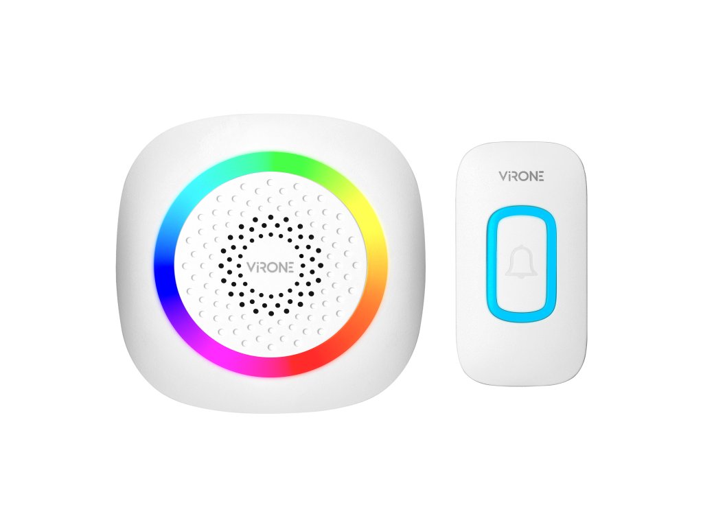PELA DC, bezdrôtový batériový zvonček, učebný systém, 60 zvukov, LED RGB, 300m, biely