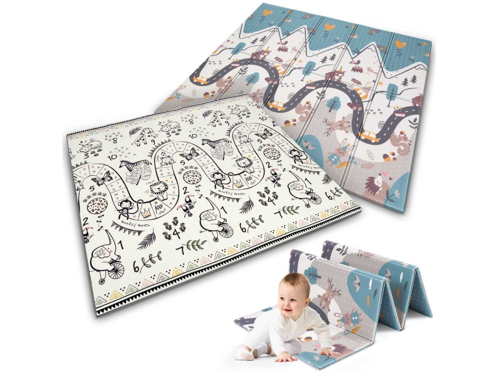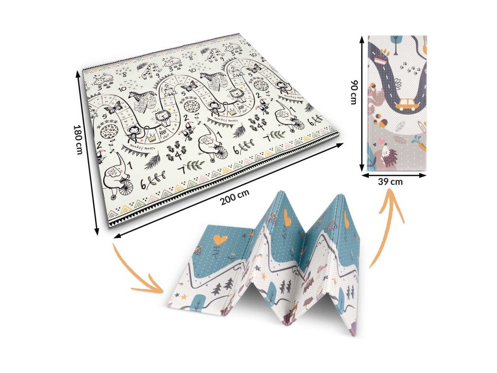 Táto jedinečná veľká skladacia podložka s rozmermi 200x180 cm má mnoho praktických využití. Poskytne vášmu dieťaťu pohodlie pri hraní a učení sa plaziť!