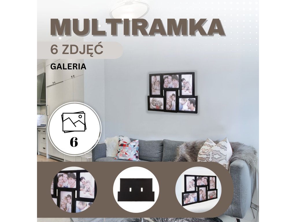 PF0009 RÁM NA 6 FOTOGRAFIÍ (ČIERNY)
