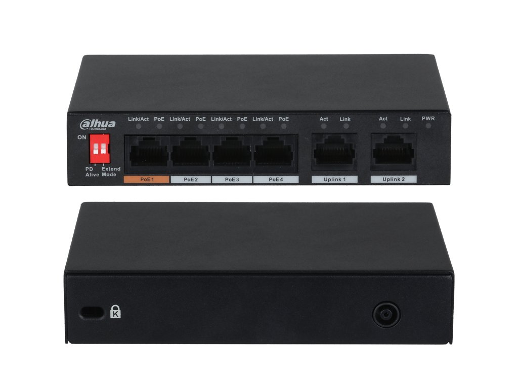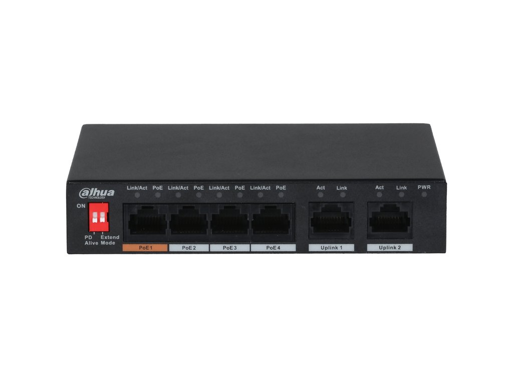 PFS3006-4ET-60-V2 - Prepínač PoE 4+2, 1xHiPoE, Uplink 100Mbps, 60W - DAHUA - DAHUA