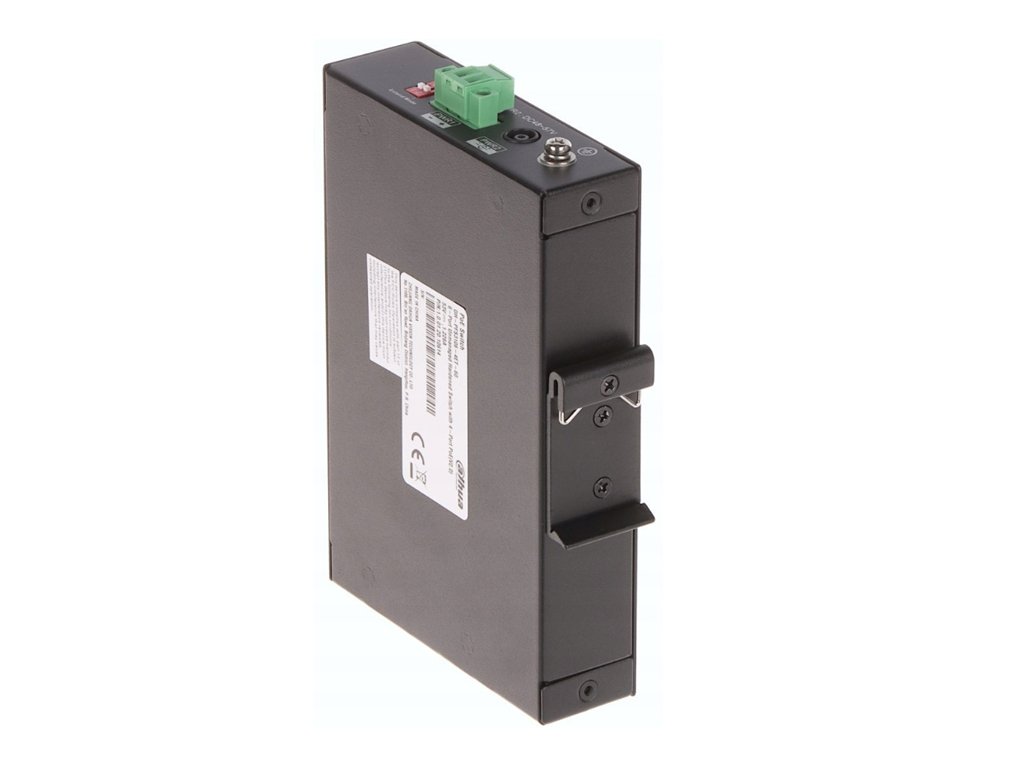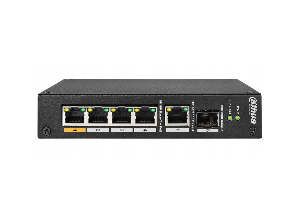 Priemyselný PoE switch PFS3106-4ET-60-V2 firmy DAHUA určený na prácu vo veľkých video prúdoch v systémoch monitorovania CCTV IP. Umožňuje bezproblémovú nepretržitú prevádzku 24h sedem dní v týždni. Zariadenie má 1 port RJ45 Hi-PoE 10/100Mbps a 3 porty RJ45 PoE 10/100Mbps s podporou technológie PoE 802.3af/at (power over ethernet) a 1 port RJ45 10/100/1000Mbps Uplink a 1 port SFP 100/1000Mbps, ako aj ochranu pred bleskami a potenciálovými rozdielmi medzi zariadeniami.