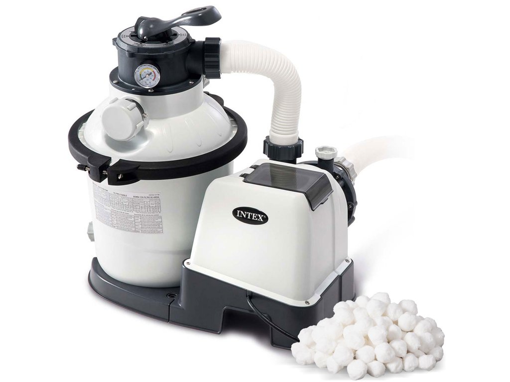 Pieskové čerpadlo Intex dokáže prečerpať 5700 litrov za hodinu a pojme 12 kg piesku.