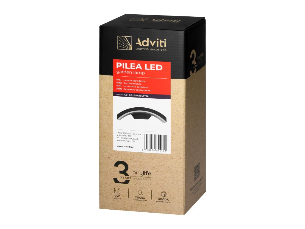 Záhradné svietidlo PILEA LED kombinuje funkčnosť, trvácnosť a estetiku, čo ho robí ideálnym pre vonkajšie použitie. Vďaka svojej polkruhovej forme a svetelnému lúču smerujúcemu nadol vyzerá svietidlo elegantne a moderne, čím vytvára príjemnú atmosféru v záhrade, na terase alebo balkóne.LED technológia zaručuje energetickú efektívnosť a dlhú životnosť. Svetelný zdroj s výkonom 9W generuje svetelný tok 700lm poskytujúci jasné a efektívne osvetlenie. Široký uhol lúča umožňuje rovnomerné osvetlenie veľkej plochy. PILEA LED je napájané 230V AC.