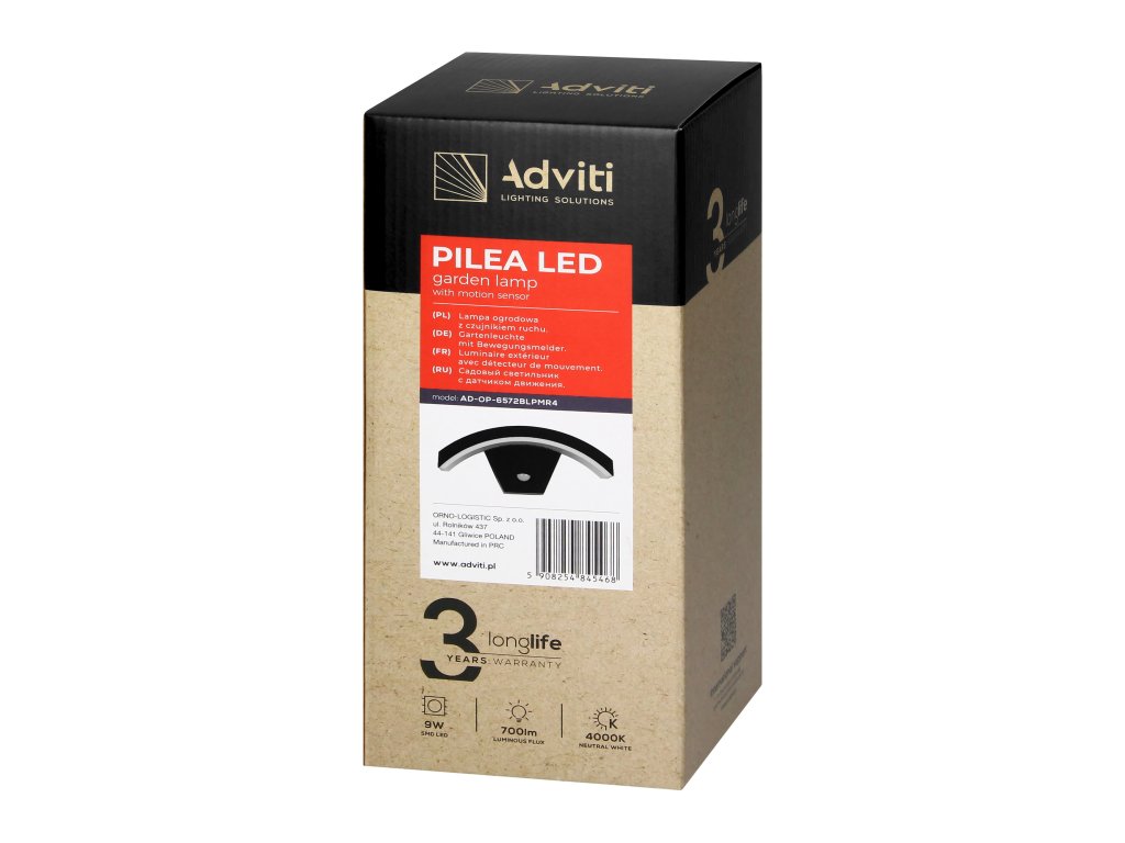 Prezentované svietidlo PILEA LED má zabudovaný pohybový a svetelný senzor, ktorý zvyšuje bezpečnosť členov domácnosti. Senzor sa automaticky zapne iba vtedy, keď detekuje pohyb vo svojom okolí. Detekčný rozsah je 5 m. Okrem toho možnosť nastavenia svetla a doby osvetlenia pomáha nastaviť senzor podľa užívateľových preferencií. Rozsah ovládania svetla je 5-2000 LUX, zatiaľ čo čas 10s±5s je 4 min±1 min.