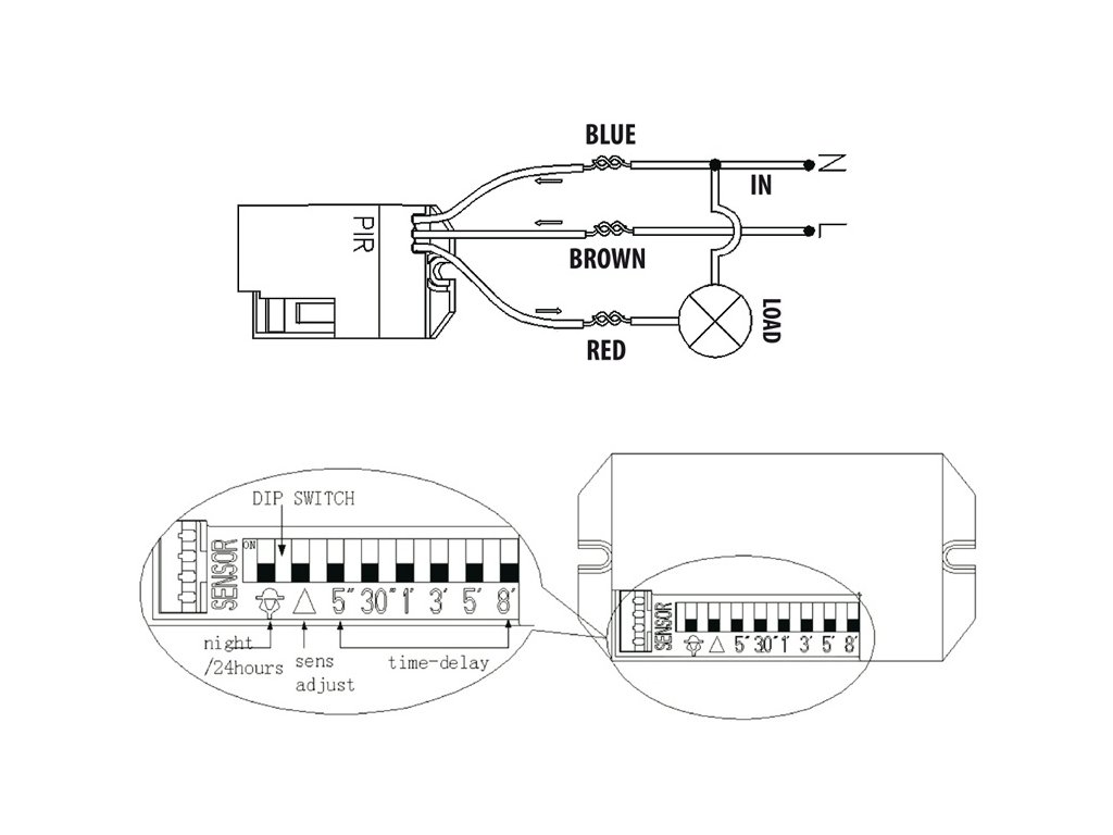 PIR detektor pohybu s externým senzorom 800W 360st MCE32