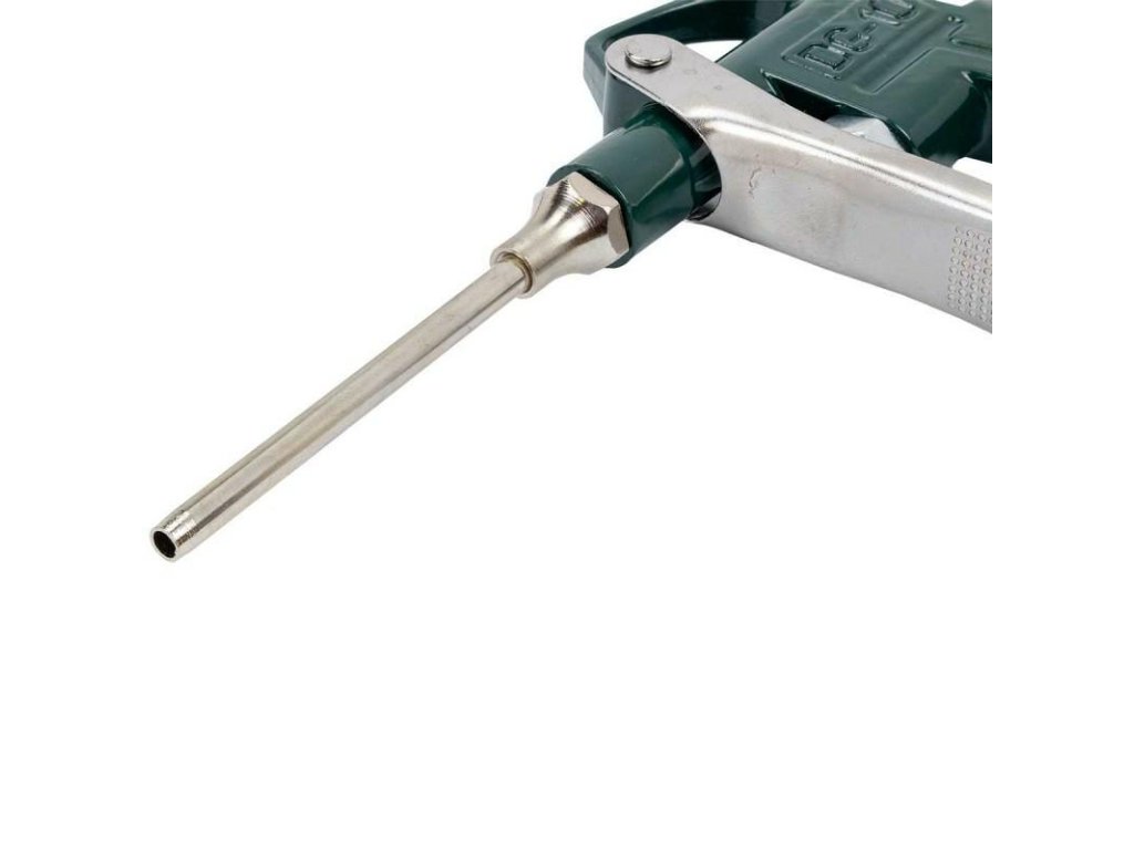 - Pištoľ umožňuje bodové a cielené čistenie vďaka úzkemu a zameranému prúdu stlačeného vzduchu, čo je obzvlášť užitočné pri práci s malými alebo komplikovanými časticami, na čistenie alebo odstraňovanie prachu, špiny, pilín, zvyškov a iných drobných častíc na povrchoch alebo z úzkych priestorov.