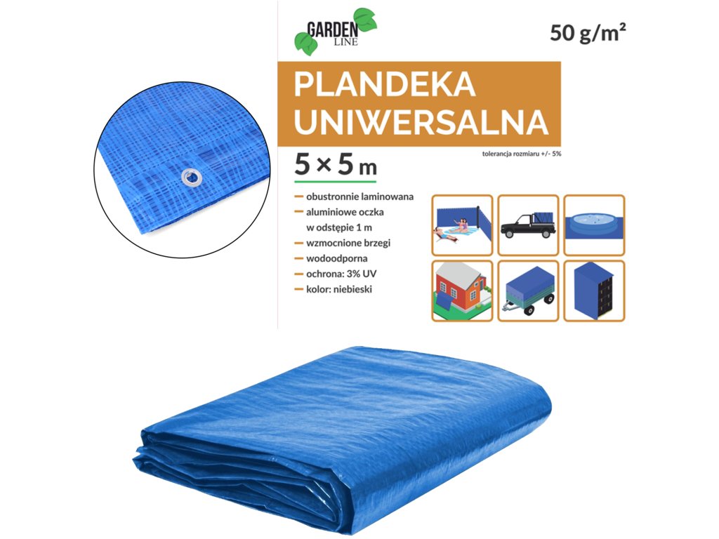 PLACHTA 5 x 5 M (+/- 5%) 50GSM 3%UV MODRÁ *4119
