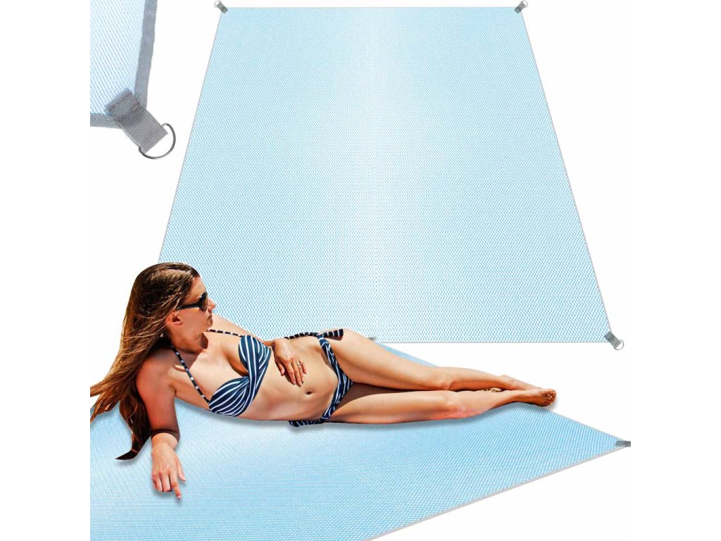 Vďaka sieťovanému materiálu sa môžete jediným pohybom zbaviť všetkých čiastočiek piesku, ktoré vietor zaniesol na vašu deku alebo ktoré si deti priniesli na nohy.