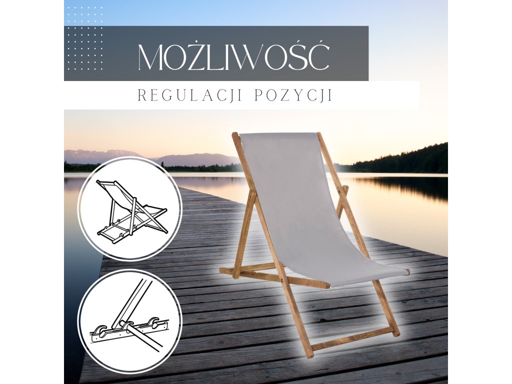 Plážová stolička DC0012 sivá- Rám vyrobený z odolného bukového dreva