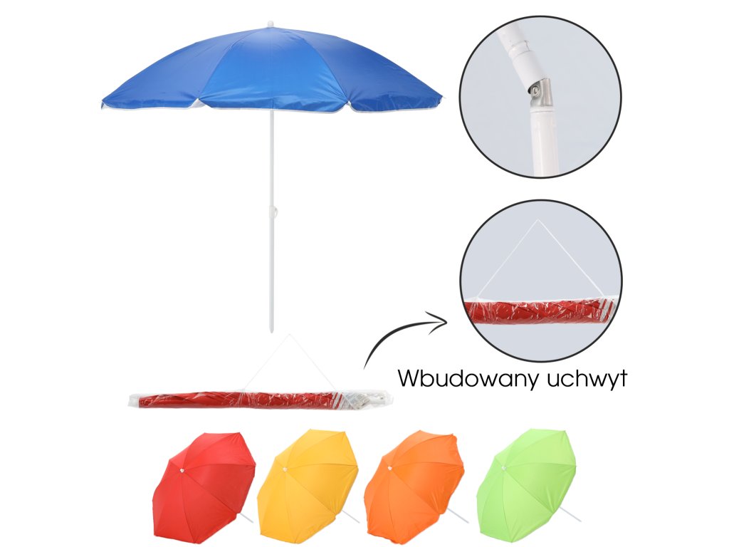 Plážový slnečník je ideálnym produktom na výlety, dovolenky, pikniky. Je vyrobený z vysokokvalitného materiálu, poskytujúc pohodlie a ochranu pred slnkom. Slnečník je skladací, má dvojdielnu konštrukciu, ktorá uľahčuje jeho prepravu a skladovanie, a tiež je jednoduchý na montáž. Okrem toho má mechanizmus sklápania, ktorý umožňuje nastavenie uhla sklonu. Slnečník je potiahnutý striebornou vrstvou s funkciou ochrany pred UV žiarením.