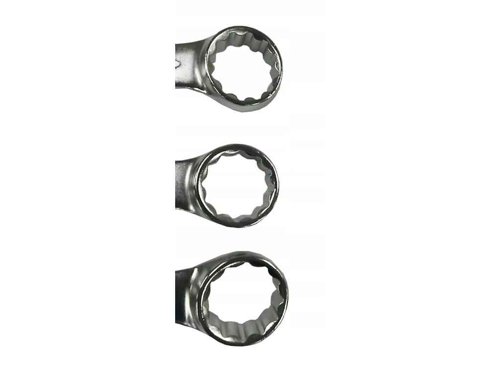 Plochý okružný kľúč, odsadený 15 , vyrobený z uhlíkovej ocele, povrch kľúča chrómovaný, satinovaný.