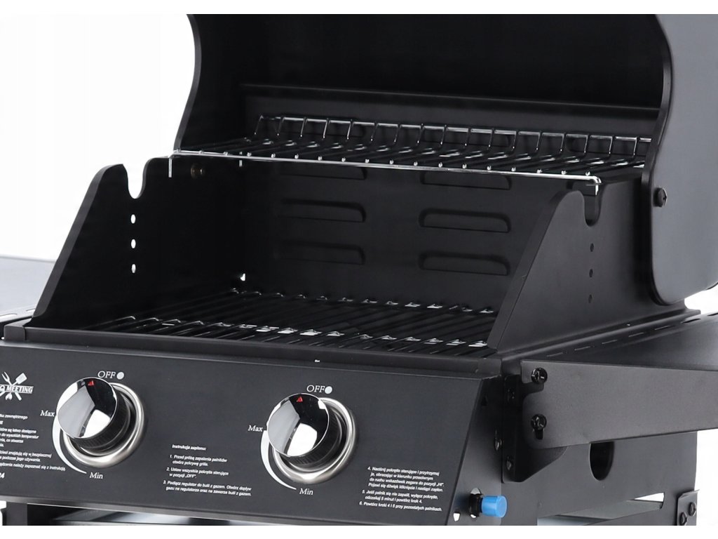 Plynový gril s 2 horákmi je vynikajúcou voľbou pre milovníkov grilovania. Vybavený praktickými funkciami, uľahčuje prípravu chutných jedál. Vďaka kompaktnej konštrukcii a skladacím bočným stolíkom je pohodlný na používanie a skladovanie.
