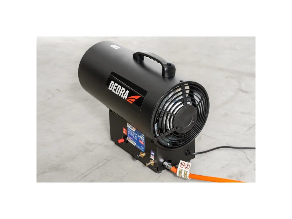 Plynovévykurovacie teleso DED9946 je určené na použitie vu z a v r e t ý c h miestnostiach. Používa sa na vykurovanie nekúrenárskych priestorov, ako sú dielne, sklady, výrobné haly, skleníky alebo pri stavebných prácach. Ohrievač je poháňaný propán-butánom (G30). Spotrebič sa smie používať len v dobre vetraných miestnostiach. Kovový kryt sa nezahrieva ani počas dlhej prevádzky. Kovové puzdrosa nezahrieva ani počas dlhého času. Súčasťou balenia je špeciálny regulátor a hadica. Soľná rukoväť uľahčuje prenášanie a prepravu.Tento výrobok sa nemôže používať ako primárny zdroj vykurovania.