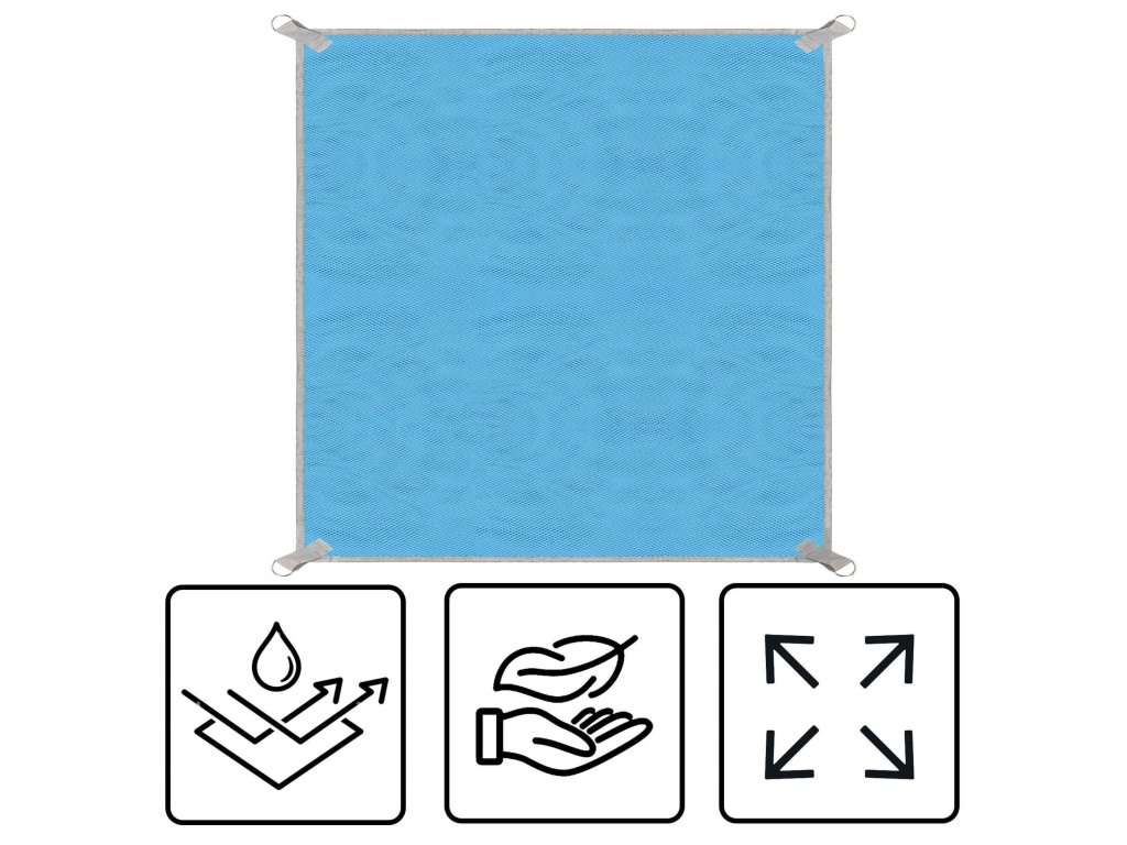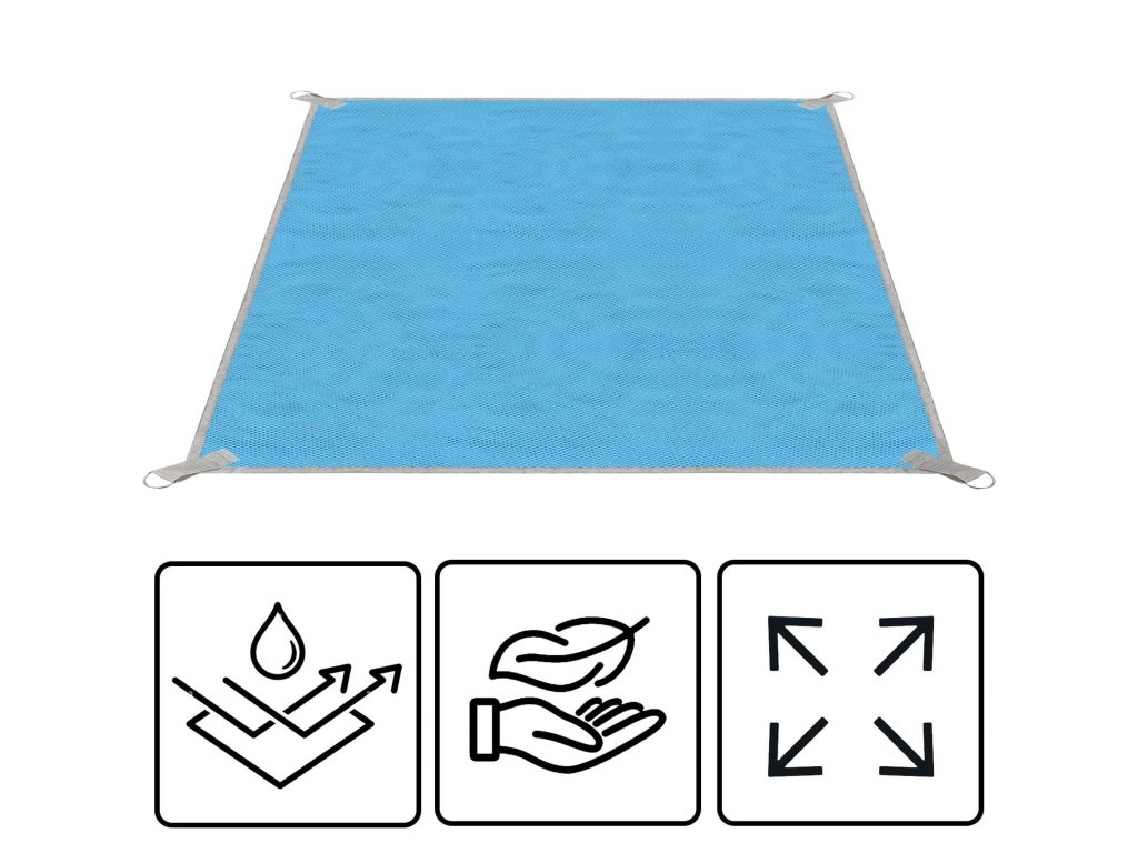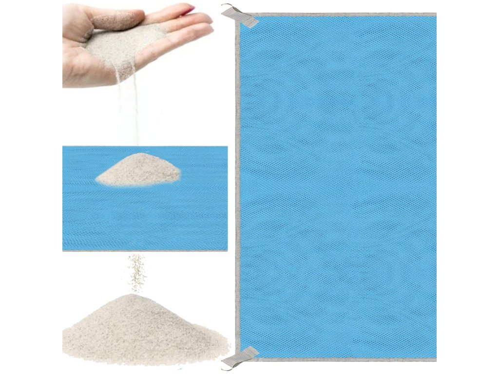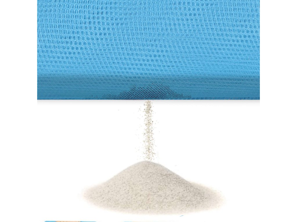 - Systém dvoch vrstiev sieťky umožňuje jedným pohybom ruky zbaviť sa zrniek piesku z povrchu rohože