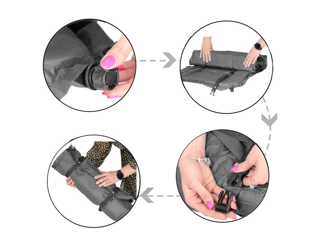 - Nastaviteľné popruhy so sponami na západku - zabezpečia podložku v jednej polohe po zložení