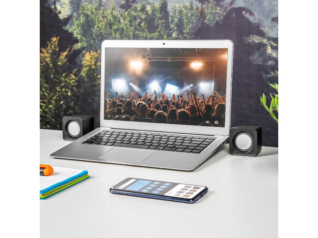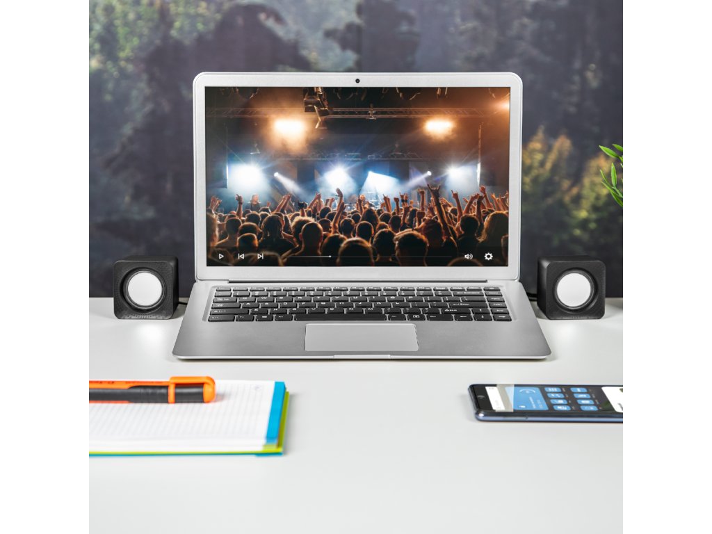 Jednou z hlavných výhod počítačových reproduktorov CS-10 zo série Rebel Comp sú ich kompaktné rozmery. Vďaka nim si môžete vziať reproduktory aj na cesty a vychutnať si lepší zvuk, aj keď ste mimo domova. Za zmienku stojí aj minimalistický dizajn a elegantný kryt v klasickej čiernej farbe. Vďaka tejto kombinácii súprava dokonale zapadne do interiéru vašej kancelárie.