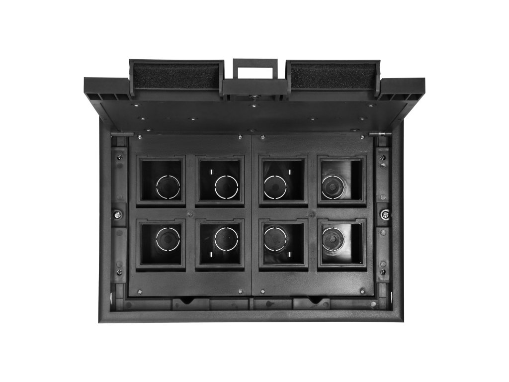 - Úprava priestoru: Podlahový box na modulárne zásuvky poskytuje čistý a upravený vzhľad bez viditeľných káblov, čo prispieva k profesionálnemu dojmu a zlepšuje celkovú efektivitu priestoru.