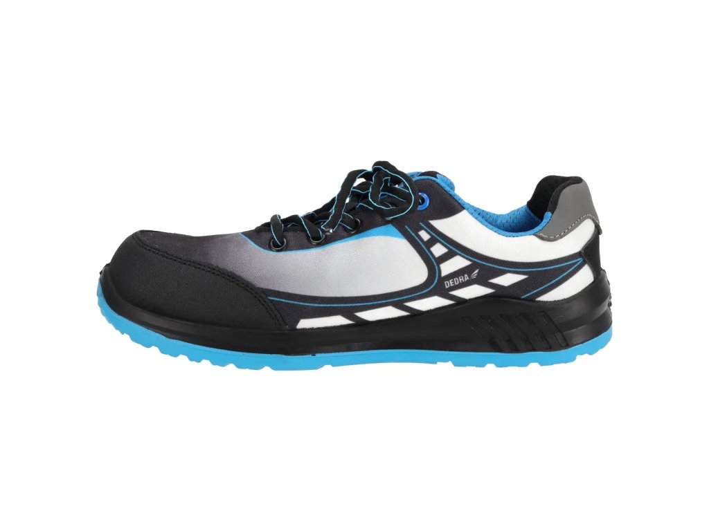 Zvršok tejto obuvi je vyrobený z priedušnej a pohodlnej tkaniny, a vnútorná podšívka z mriežky zaisťuje primeranú cirkuláciu vzduchu vo obuvi. Obuv má oceľovú špičku odolnú voči nárazom a mechanickému poškodeniu.
