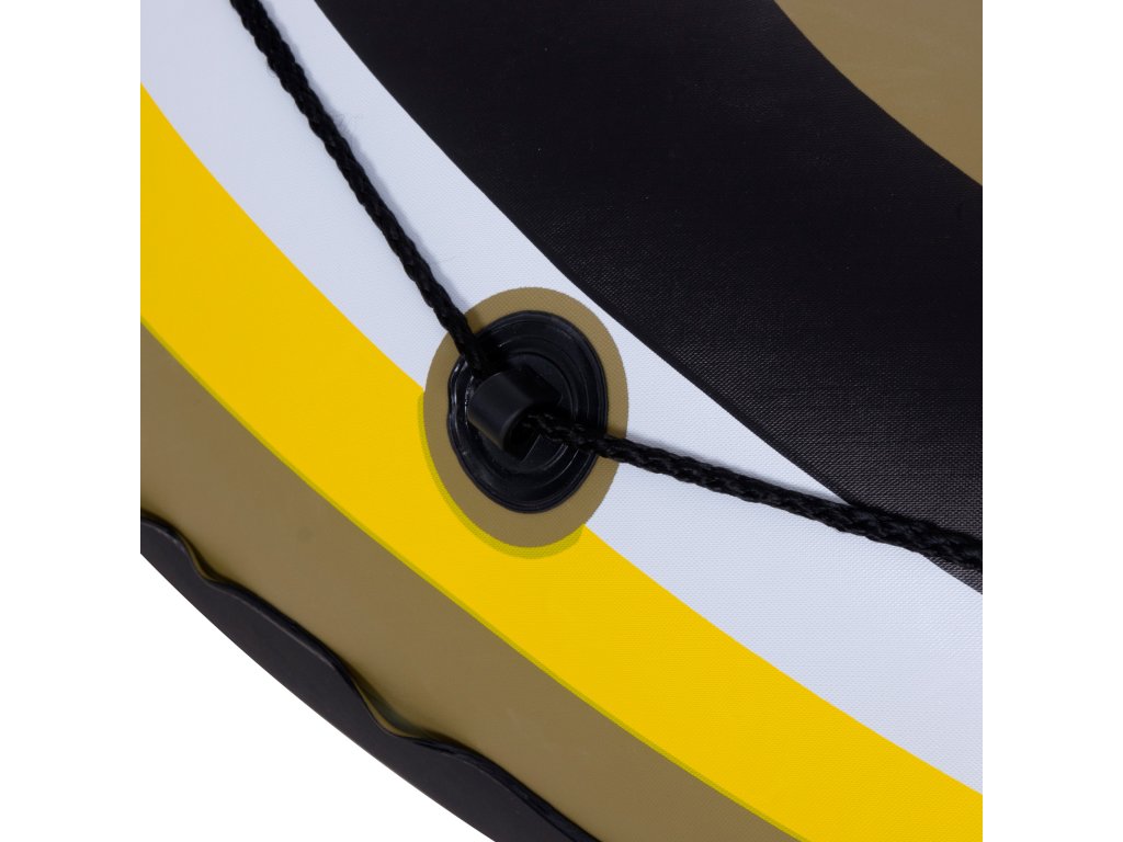 Vyrobený z pevného PVC čln ponúka odolnosť voči oderom a mechanickým poškodeniam. Štyri nezávislé vzduchové komory a bezpečnostné ventily zvyšujú stabilitu a minimalizujú riziko straty vzduchu. To je záruka pokoja aj počas intenzívneho používania.
