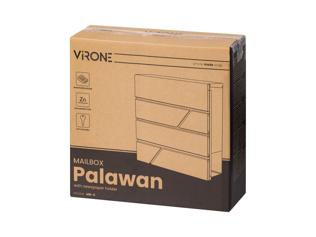 Palawan, je odolná poštová schránka a model, ktorý vydrží roky. Pozinkovaná oceľ s práškovým nástrekom vám umožní užívať si používanie poštovej schránky po dlhú dobu, zabezpečiť a uložiť vašu poštu a navyše bude krásne vyzerať.