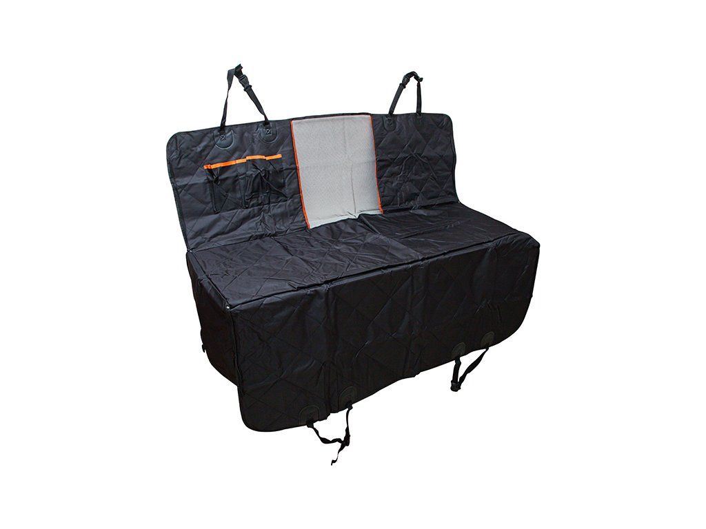 - 4 v 1 – poťah na zadné sedadlo, rohož do kufra, hojdacia sieť pre psa aj poťah na predné sedadlo