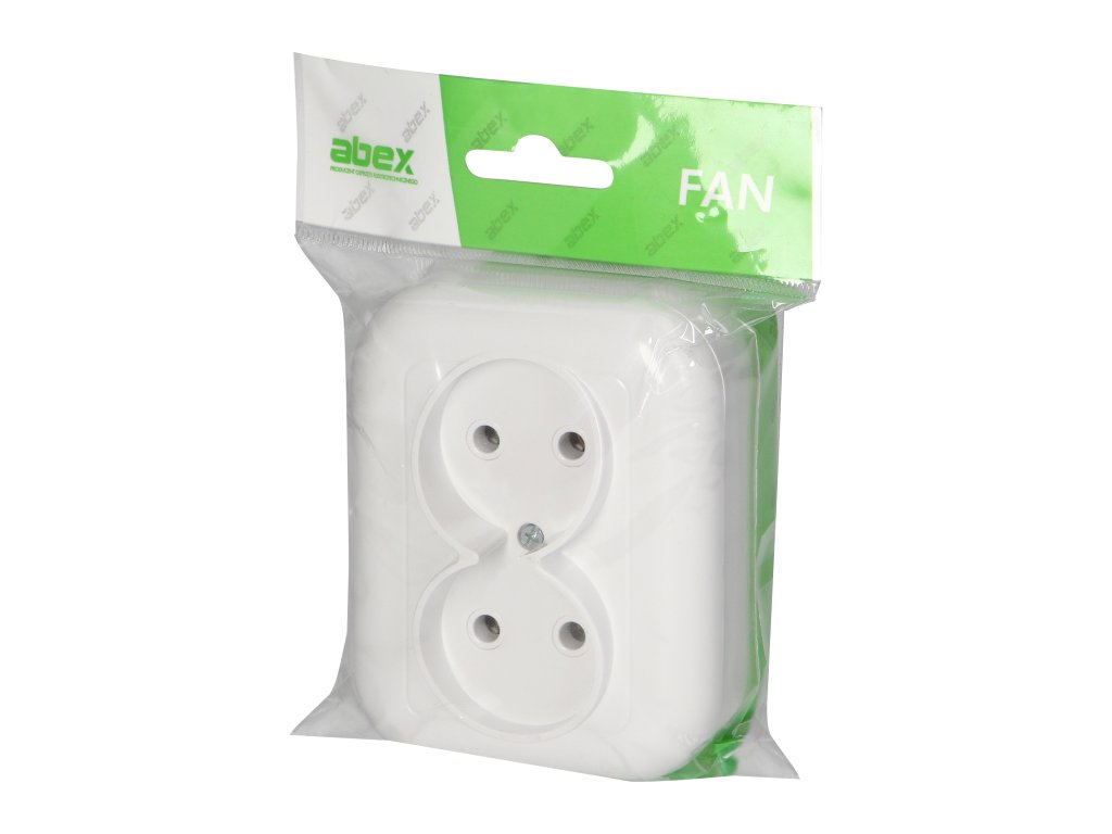Povrchová dvojitá zásuvka 2P, 16A, 250V, FAN, biela