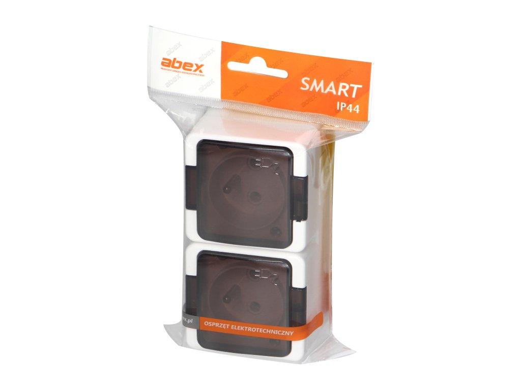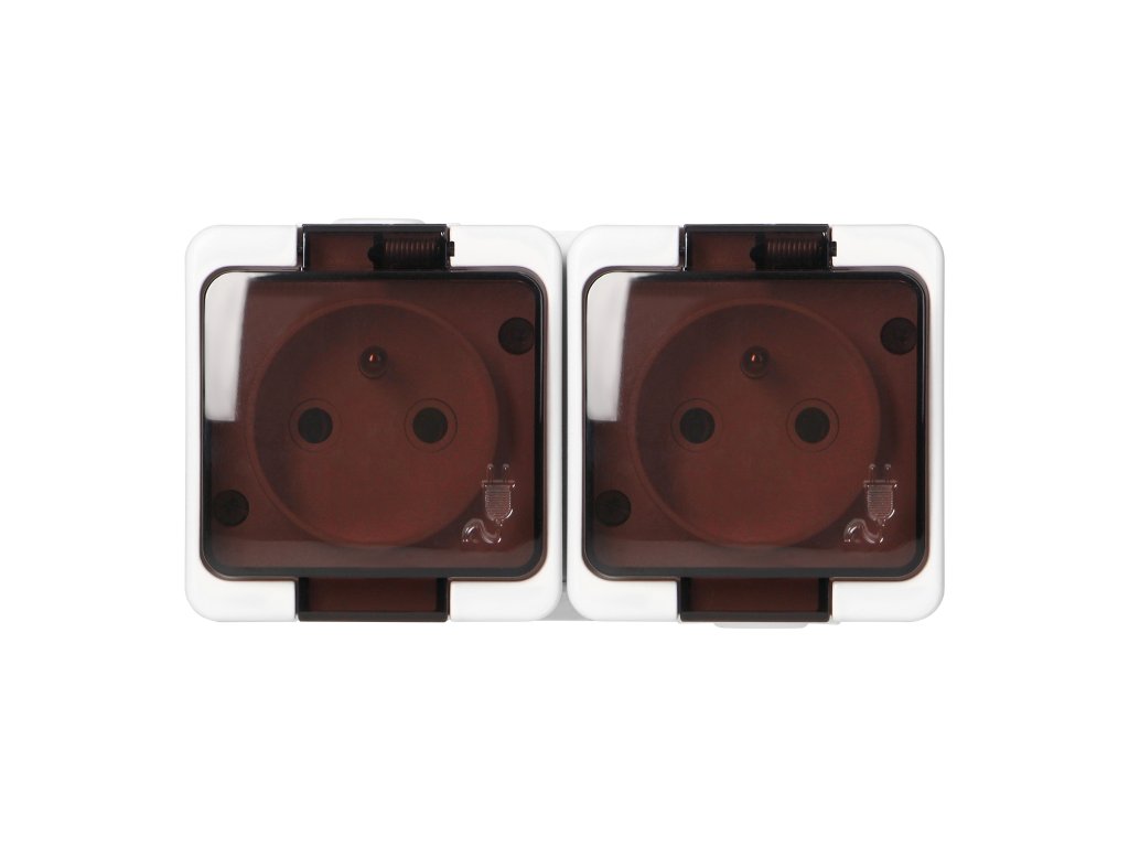 Povrchová dvojzásuvka 2x2P+E, striekajúca s krytom, IP44, SMART, bielaDodatočné parametre