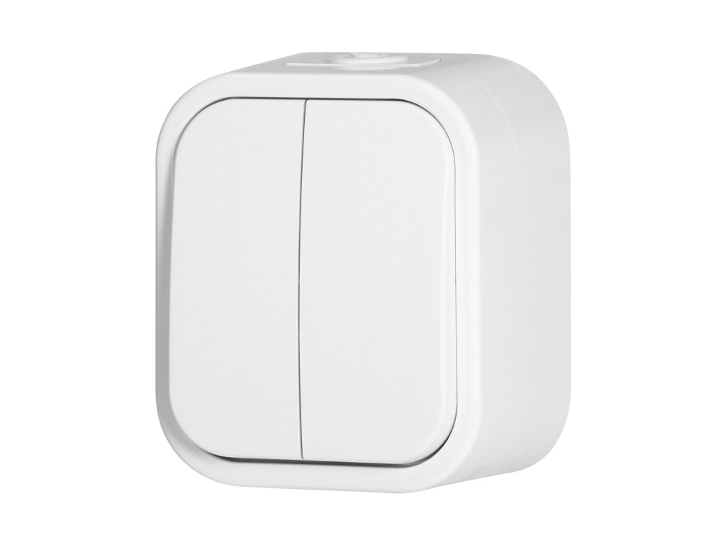 Séria zásuviek a spínačov B2, hodnotenie IP54, odolná voči prachu a vlhkosti. Séria sa vyznačuje nadčasovým tvarom a robustným krytom. Ideálne na inštaláciu v priemyselných objektoch a domácnostiach. Spínače sú vybavené rýchlokonektormi, zatiaľ čo zásuvky sú vybavené tradičnými skrutkovými spojeniami.Dvojtlačidlový spínač je prispôsobený na povrchovú montáž. Produkt sa používa na ovládanie osvetlenia, napríklad zloženého z lustrov a tradičných alebo moderných LED žiaroviek. Umožňuje zapnúť a vypnúť osvetlenie, rozdelené do dvoch alebo viacerých zón. Bude vhodný všade tam, kde je potrebná ochrana proti prachu a vodným postrekom (IP54).