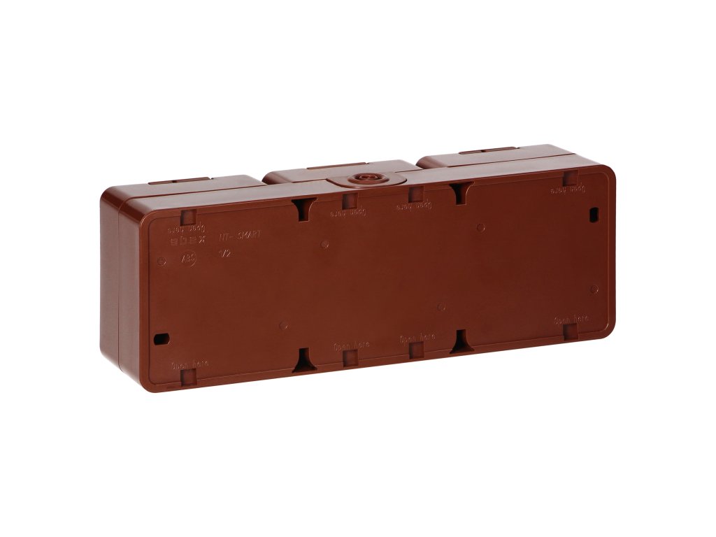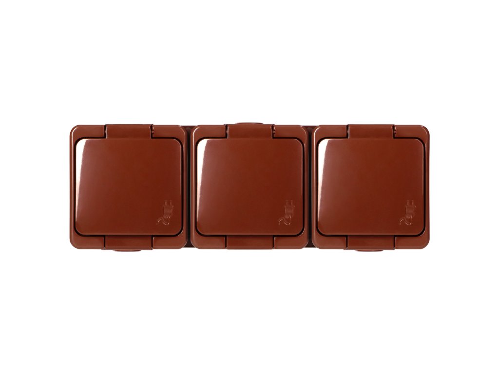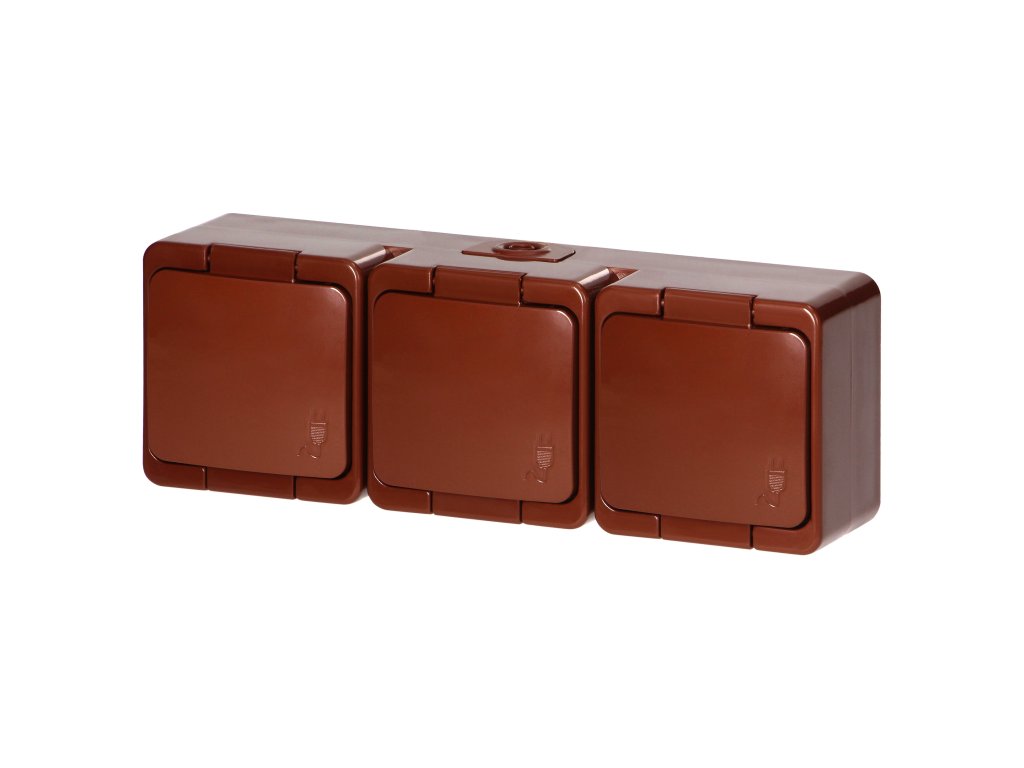 Povrchová trojitá zásuvka 3x2P+E, striekacia odolná krytom, IP44, SMART, hnedá.Dodatočné parametre