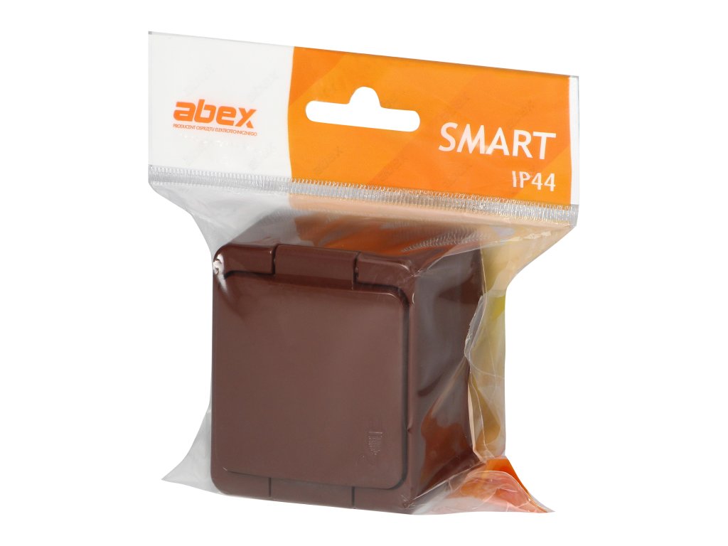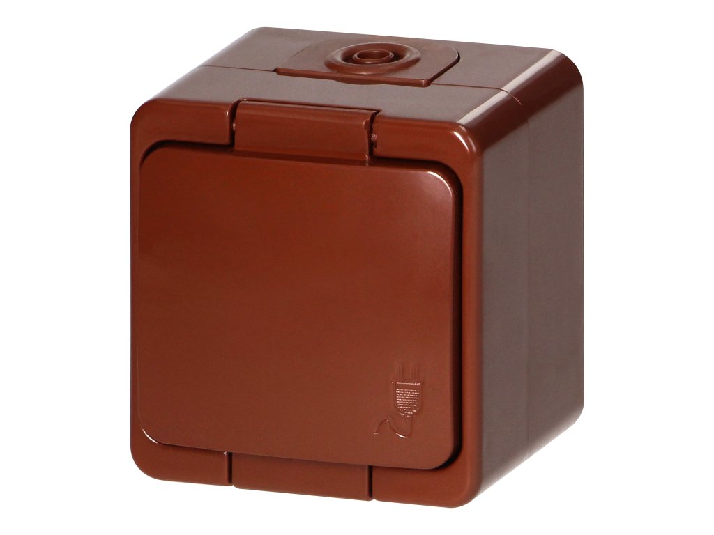 Povrchová zásuvka 2P+E, s krytom proti striekajúcej vode, IP44, SMART, hnedá