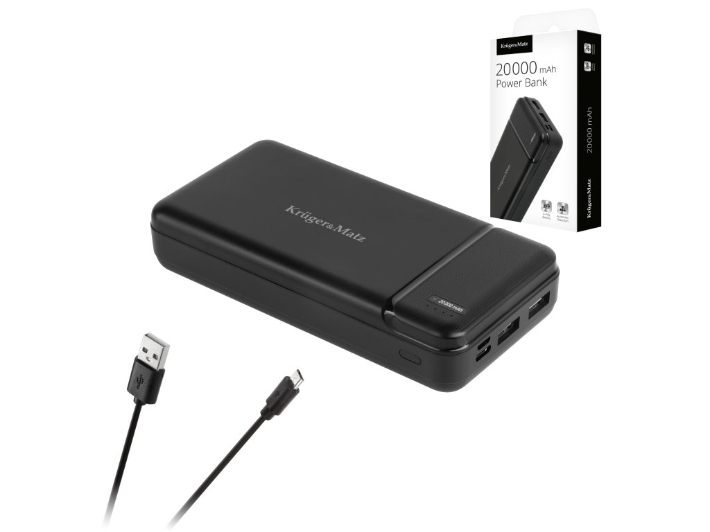 Ak vám náročná práca v teréne umožňuje nabíjať smartfón alebo tablet niekoľkokrát počas dňa, je to znamenie, že potrebujete naozaj veľkú powerbanku! Vyberte si Kruger&Matz KM0906 s lítiovo-polymérovým článkom s kapacitou 20 000 mAh, ktorý vám umožní mnohokrát nabiť váš smartfón, tablet alebo fotoaparát. Vďaka dvom portom USB môžete s objemnou powerbankou Kruger&Maz nabíjať dve zariadenia súčasne. Stačí pripojiť kábel a zariadenie samo rozpozná pripojenie a začne pracovať.
