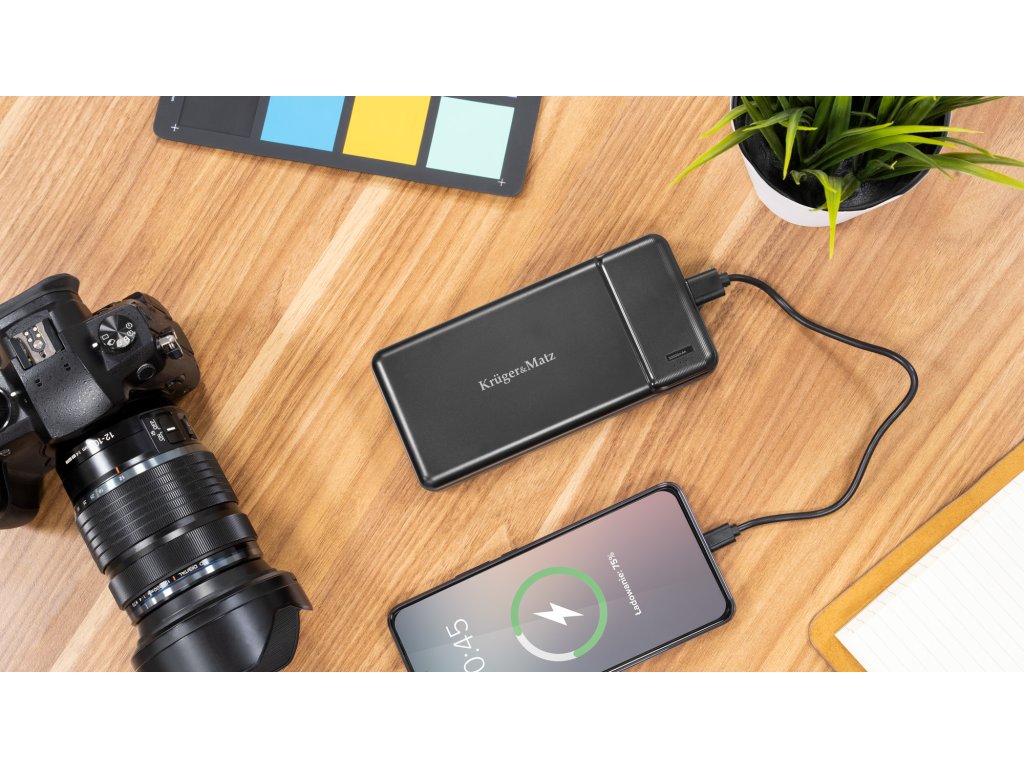 Potrebujete naozaj výkonnú powerbanku? Model Kruger&Matz KM0907 má lítiovo-polymérový článok s kapacitou 30 000 mAh, ktorý vám umožní mnohokrát nabiť smartfón, fotoaparát alebo notebook. Dôležité je, že príslušenstvo je vybavené 2 portami USB, takže môžete nabíjať dve zariadenia súčasne. Stačí pripojiť kábel a zariadenie samo rozpozná pripojenie a začne pracovať.