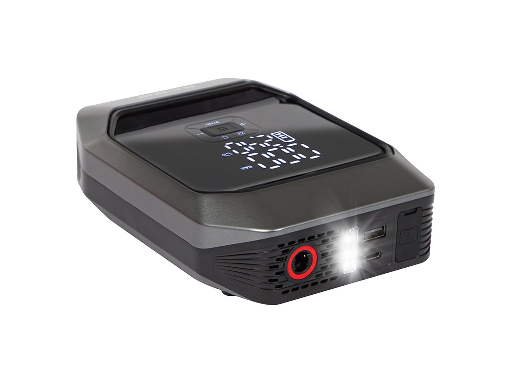- Viacúčelovosť – zariadenie 4v1: kompresor + powerbank + jump štartér + LED svetlo
