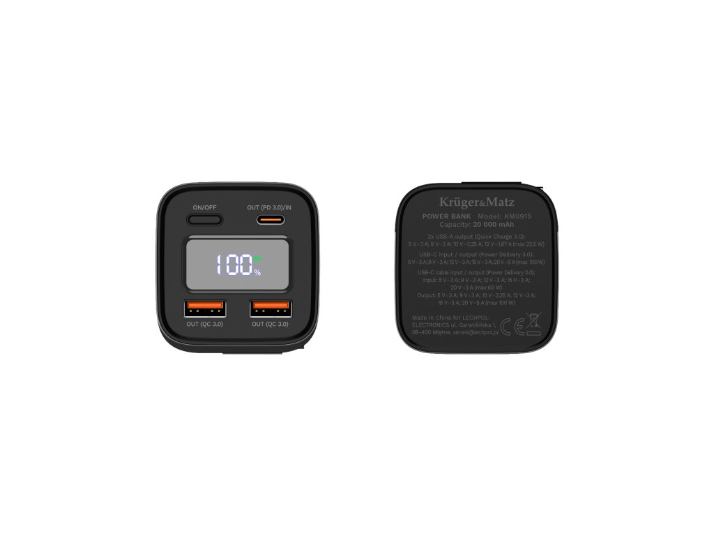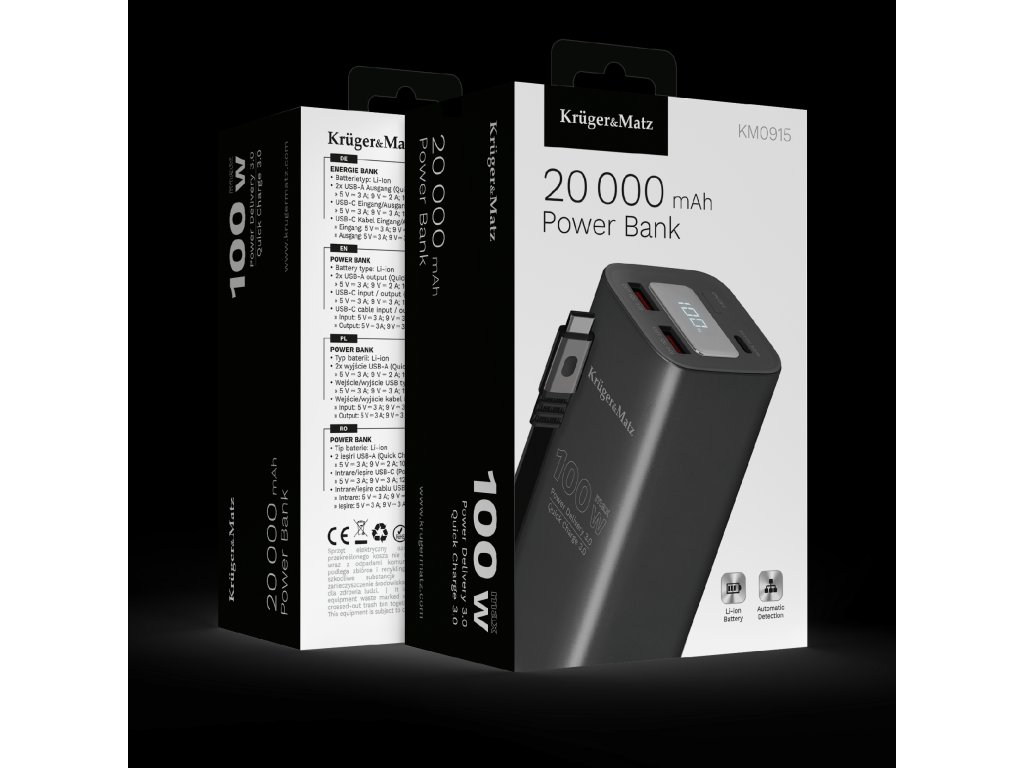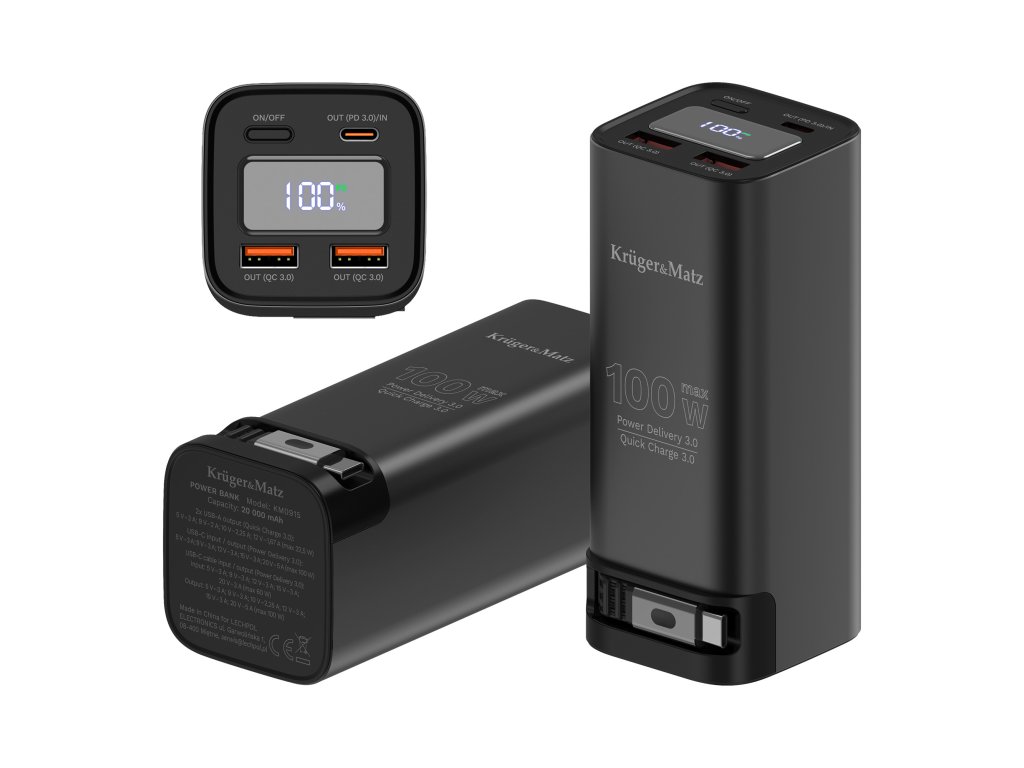 PowerBank Kruger&Matz 20000 mAh Li-ion 100W s funkciou QC a PD
