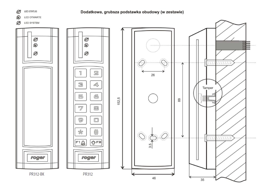 Vonkajší bezkontaktný kontrolér PR312MF-BK-G firmy ROGER je zariadenie vytvorené na prácu v pokročilých prístupových systémoch, ktoré umožňuje čítanie kariet štandardu: 13,56 MHz Mifare. Kryt čítačky sa skladá z predného panela a základne. Nové zariadenie je namontované na štandardnej základni, ale v balení je dodávaná aj ďalšia hrubšia základňa, ktorá uľahčuje skrytie pripojovacieho kábla.