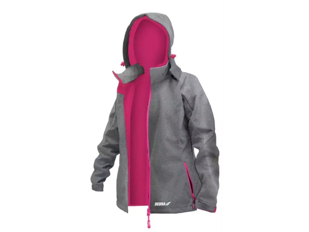 Softhelová bunda s kapucňou a membránou TPU. Membrána poskytuje vetruvzdornosť, vodotesnosť 5000 mm a priedušnosť 800 g/m?/24 h (mpv) pri 310 g/m?. Bunda m á ružovú podšívku z mikroflísu. Dve vrecká s vodotesnými zipsami. Kapucňa so sťahovacou šnúrkou a zapínaním na zips. Manžety a pás na suchý zips pre dokonalé prispôsobenie. Zapínanie na zips. K dispozícii vo veľkostiach XS až XXL.