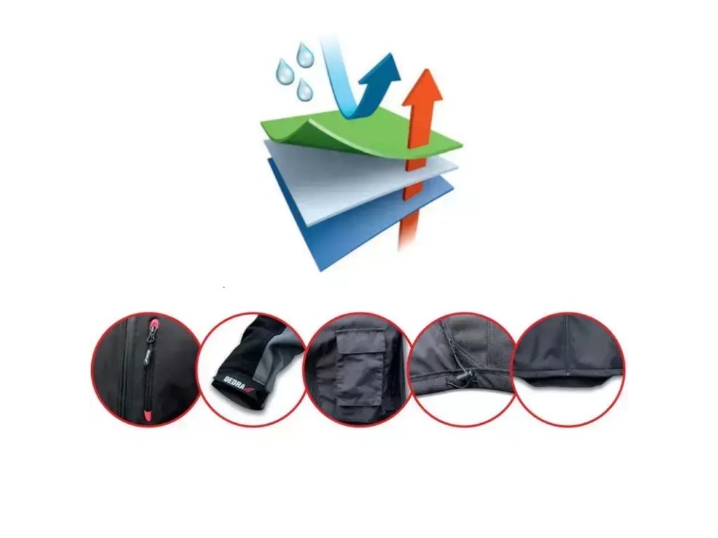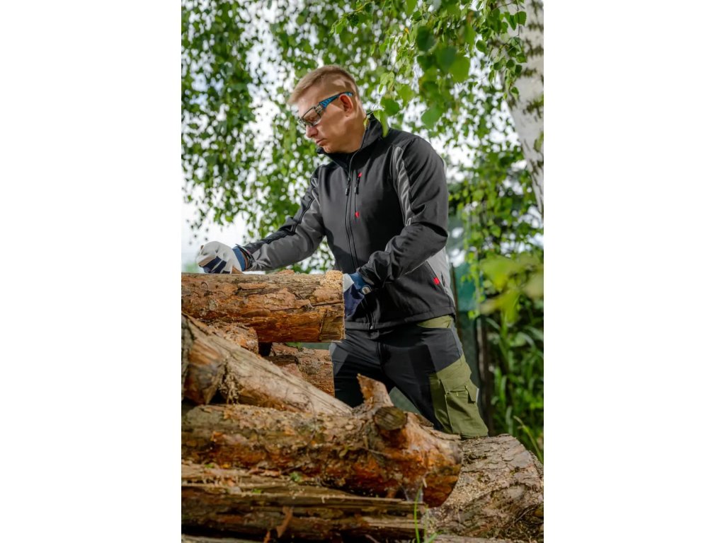 Panská bunda zo soft-shellového materiálu s membránou T PU. Membrána poskytuje vetruvzdornosť, vodotesnosť 5000 mm a priedušnosť 3000 (mpv) pri hmotnosti tkaniny 320 g/m?. Bunda má podšívku z mikroflísu. Tri vrecká na zips. Manžety na suchý zips a sťahovacia šnúrka na spodnom okraji umožňujú bundu upraviť tak, aby perfektne sedela. Zapínanie na zips. K dispozícii vo veľkostiach S až XXL.