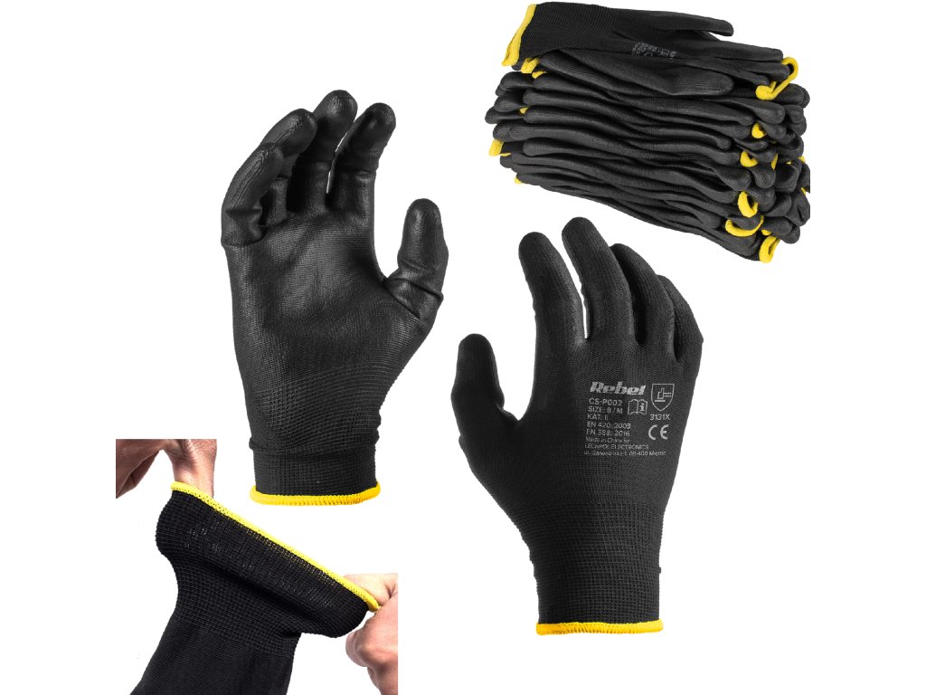 Úchopová časť rukavice Rebel potiahnutá polyuretánom zaručuje vynikajúcu priľnavosť a vysokú odolnosť proti oderu, čo je ideálne pre úlohy vyžadujúce presnosť. Elastická manžeta na zápästí navyše umožňuje voľnosť pohybu a drží rukavice na mieste, čím bráni ich zošmyknutiu počas práce.