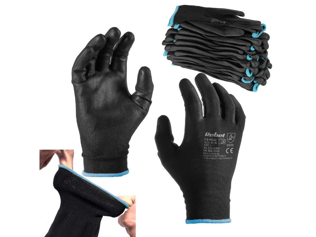 Úchopová časť rukavice Rebel potiahnutá polyuretánom zaručuje vynikajúcu priľnavosť a vysokú odolnosť proti oderu, čo je ideálne pre úlohy vyžadujúce presnosť. Elastická manžeta na zápästí navyše umožňuje voľnosť pohybu a drží rukavice na mieste, čím bráni ich zošmyknutiu pri práci.